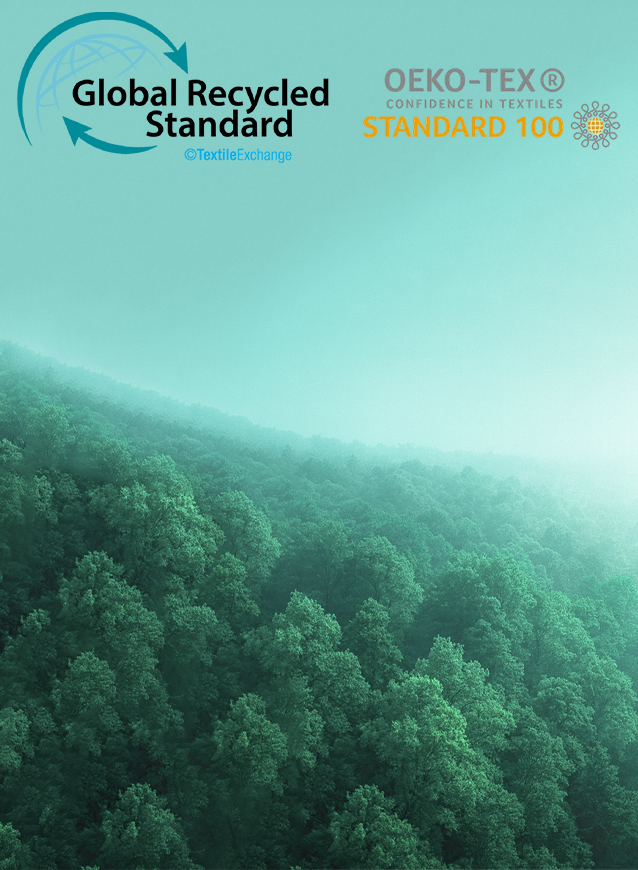 GRS recycled fabrics and OEKO-TEX verified textiles ensure comfort with a conscience.