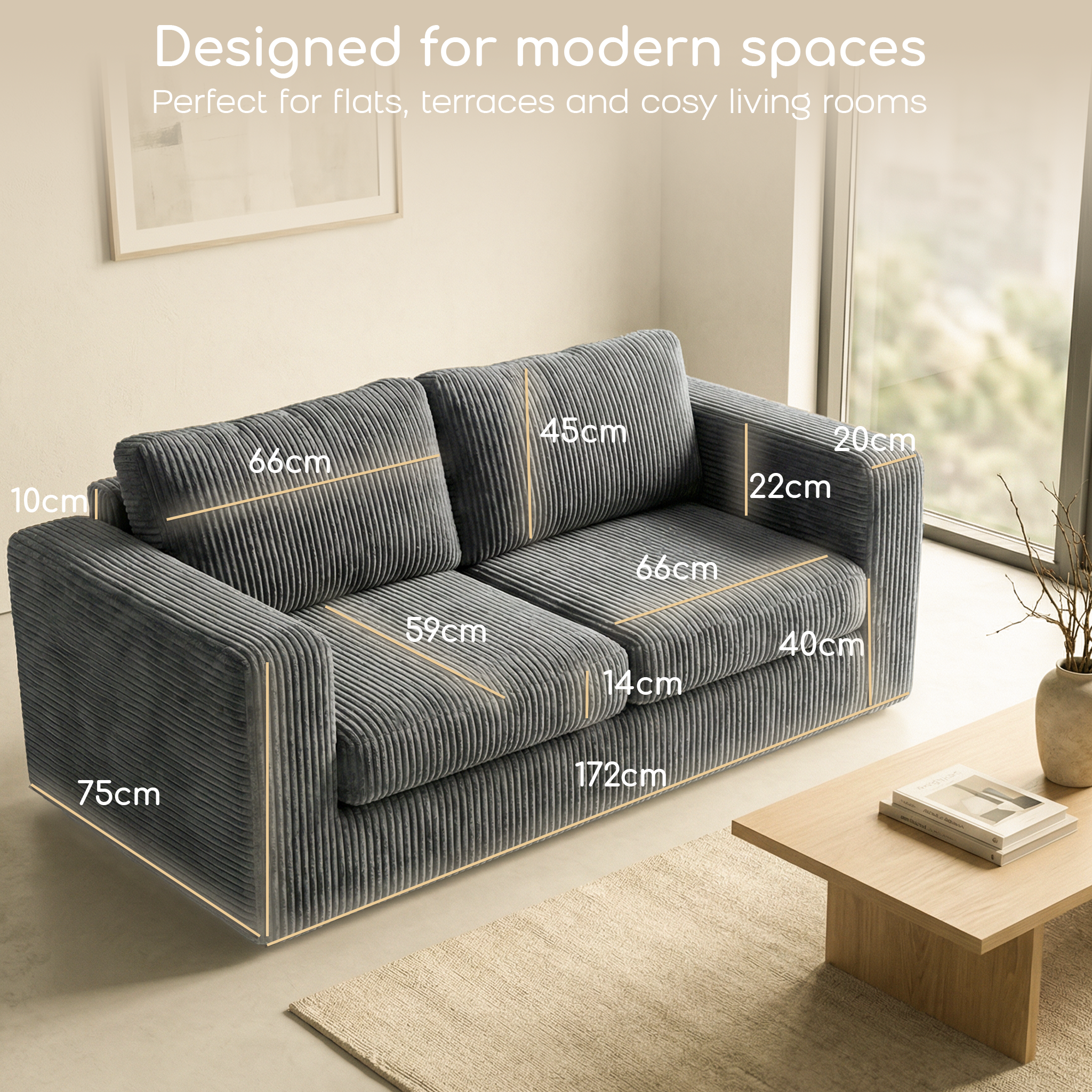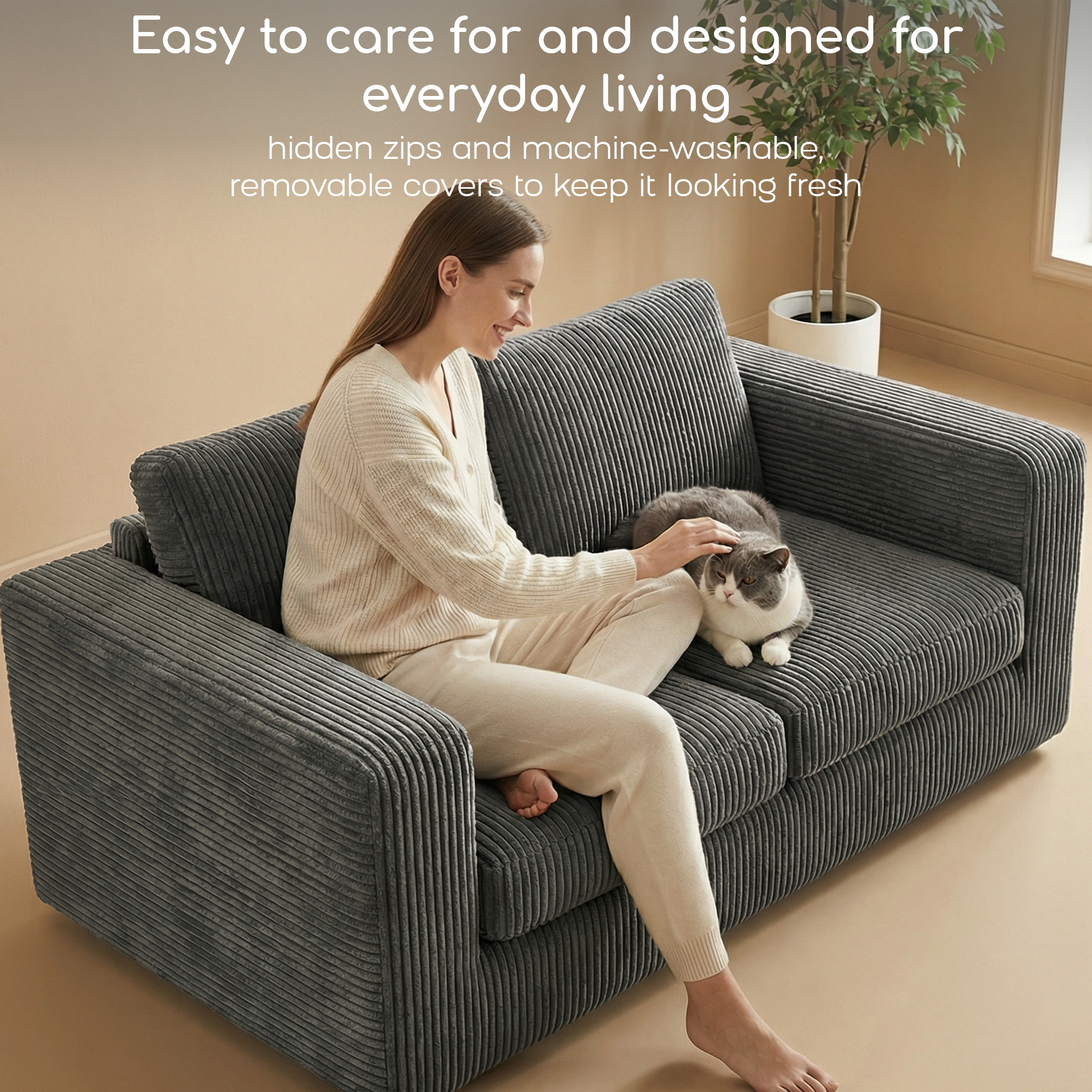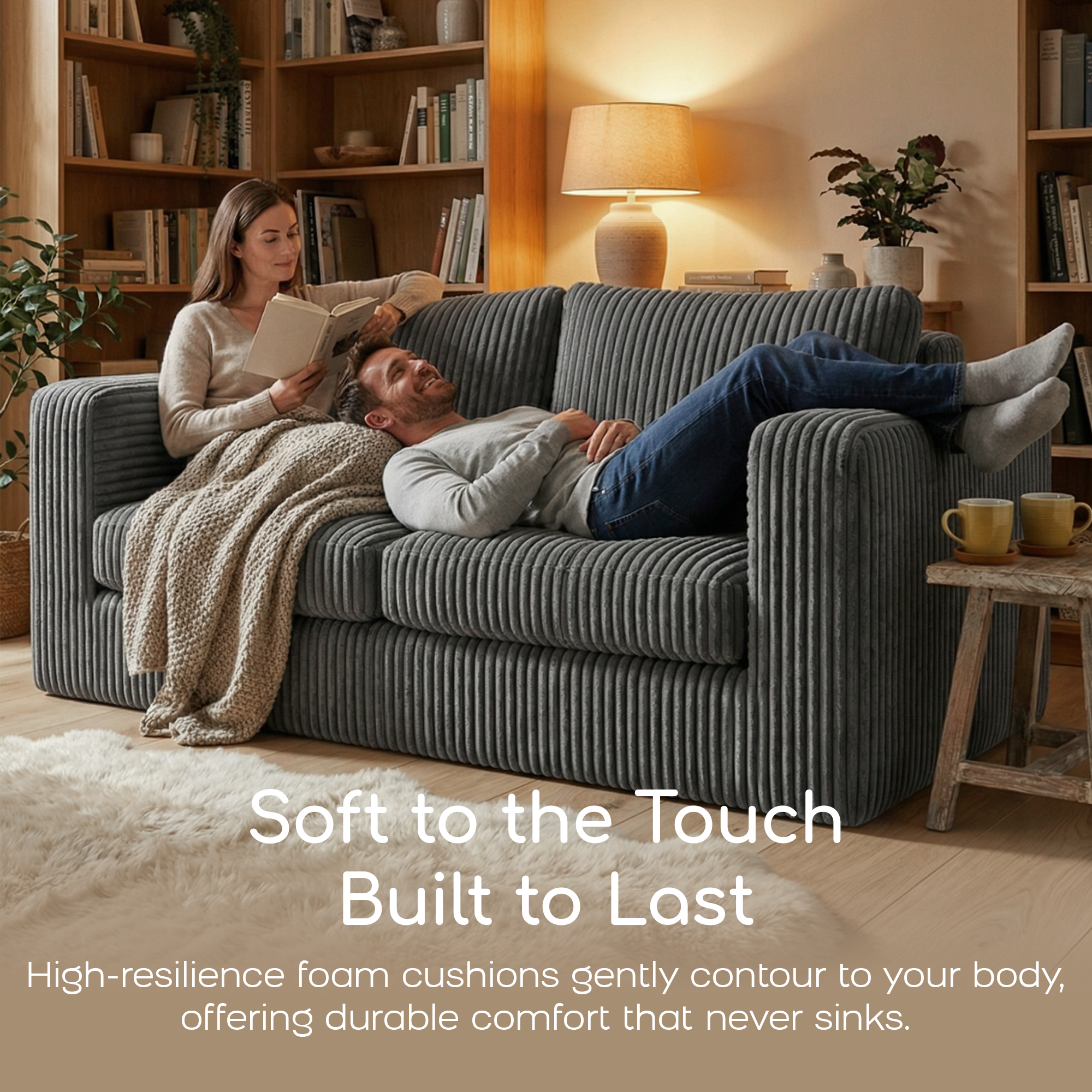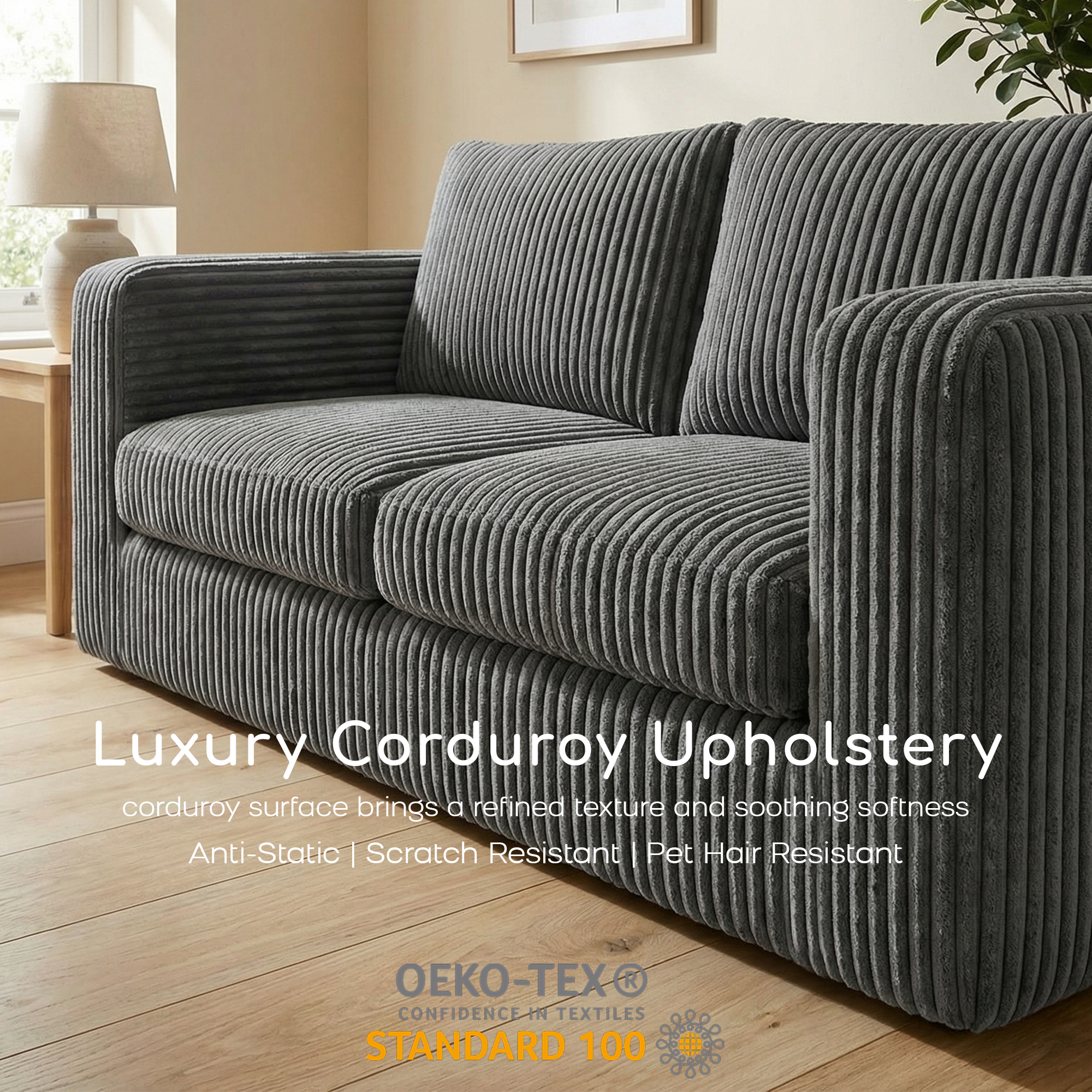 Textured corduroy fabric feels soft to the touch while adding warmth and visual depth to your living space.